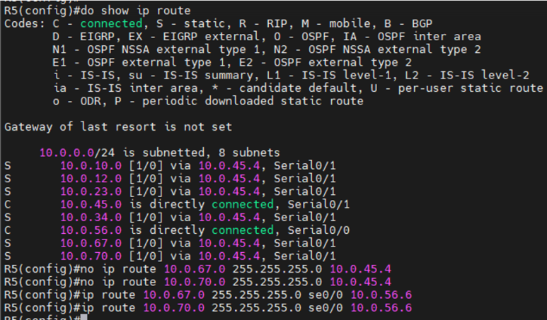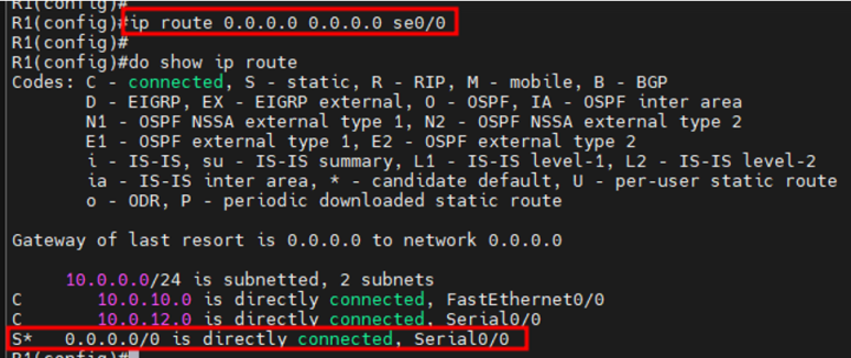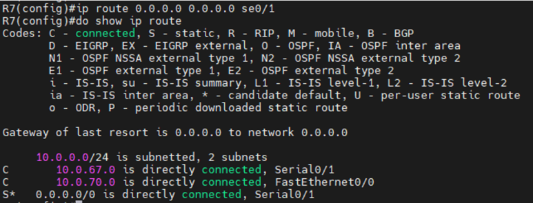 -- ex) #(config) ip route 0.0.0.0 0.0.0.0 [다음 홉의 ip]