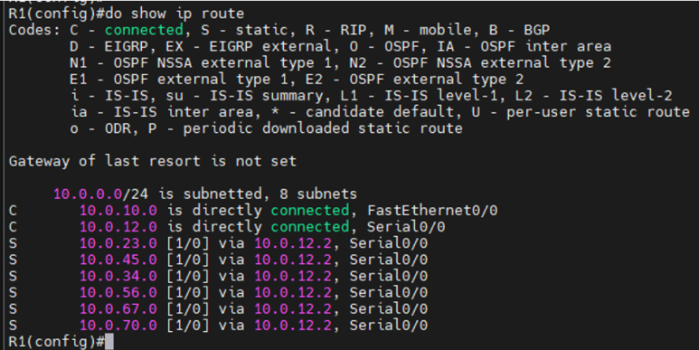 PC1(10.0.10.2/24) -> R2(10.0.12.2/24)