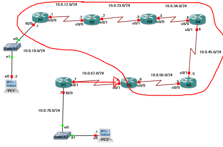 PC1(10.0.10.2/24) -> R4(10.0.23.4/24)