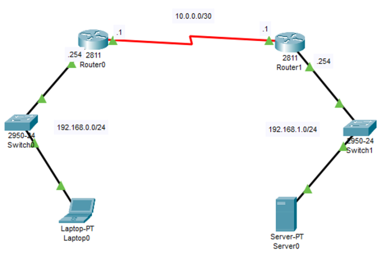 ip route 192.168.1.0 255.255.255.0 10.0.0.2