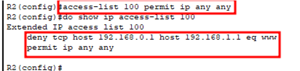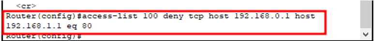 access-list 101 deny tcp 192.168.0.0 0.0.0.255 host 192.168.1.1 eq 80