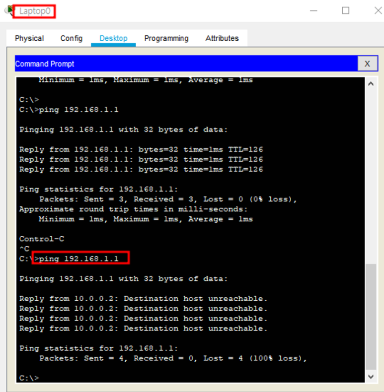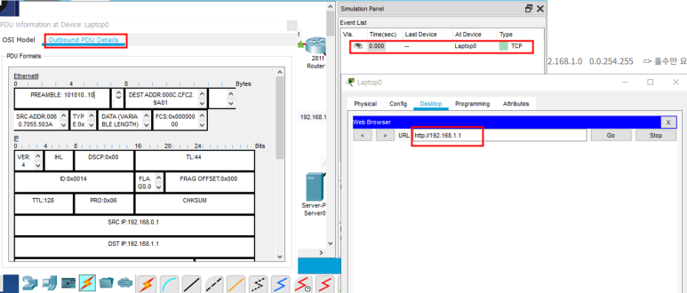 PC 하나 추가 해줘서 host 192.168.0.1(Laptop) host 192.168.1.1로 가는 인터넷 http 패킷(80번)만 차단하고,