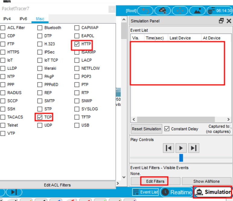 TCP와 HTTP 패킷만 캡처해서 보기 위해 기존의 것을 모두 지우고 TCP와 HTTP만 체크