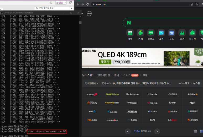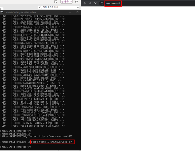 -> 444번 포트번호로 접속하면 잘못된 정보로 접속한거라, socket connection이 이뤄지지 않음