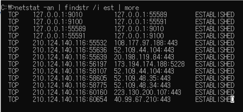 * 윈도우에서 findstr은 리눅스의 grep(egrep은 대소문자 가리지 않고)
