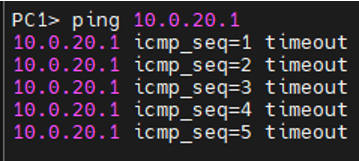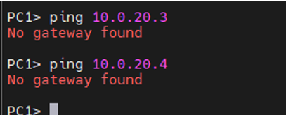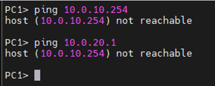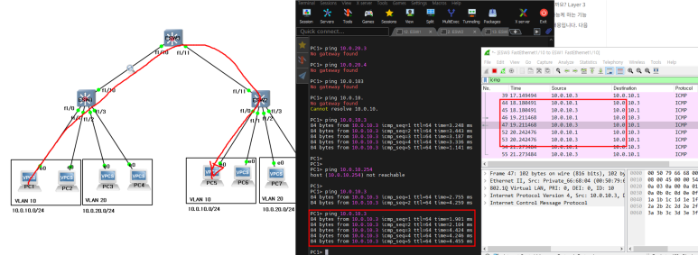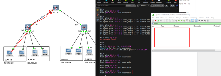 본인 대역(vlan 10)의 게이트웨이, 다른 대역(vlan 20)으로 핑 안됨