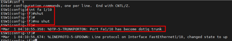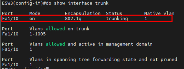 ESW1과 ESW3의 f1/10 포트의 trunk 설정을 해주자
