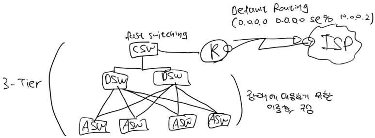 -- 원래의 DSW(분배 스위치)가 각 VLAN의 게이트웨이 역할을 하게 됨