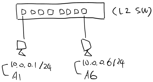 위 스위치 구성에서 ping 10.0.0.6/24로 보냈을 때