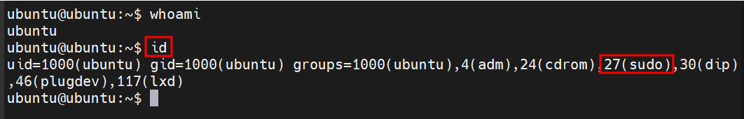 - sudo 그룹 자체에도 해당 권한이 부여되어 있어야 sudo 그룹에 속한 계정으로 sudo 가능(꼭 sudo 그룹이 아니어도 다른 그룹에 해당 권한이 있으면 다른 그룹도 sudo 가능함)