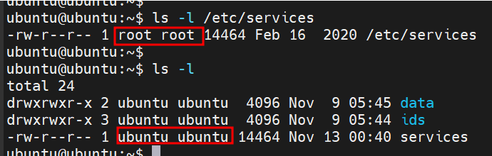 일반 사용자(ubuntu)로는 해당 파일 수정 권한 없음(read only)