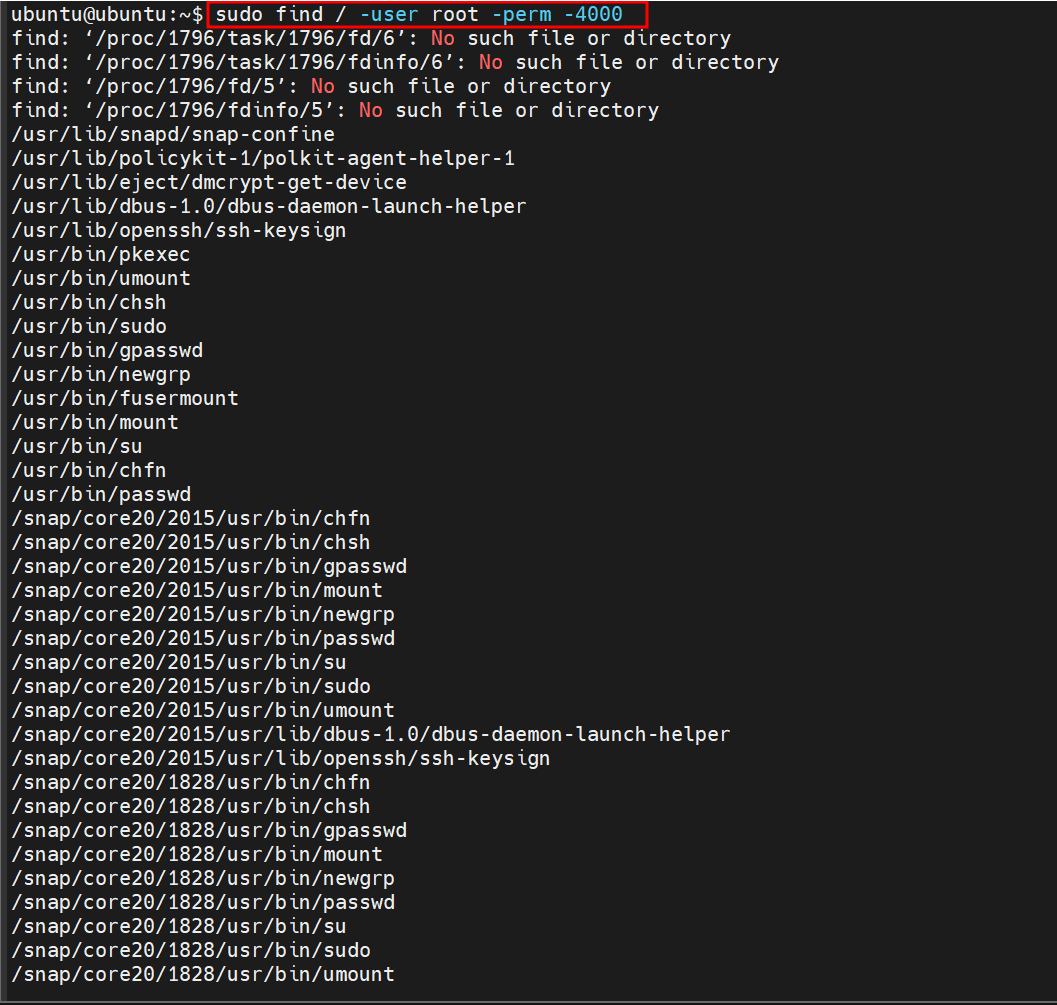 find로 SetUID 설정된 root 소유자 파일 찾아보기