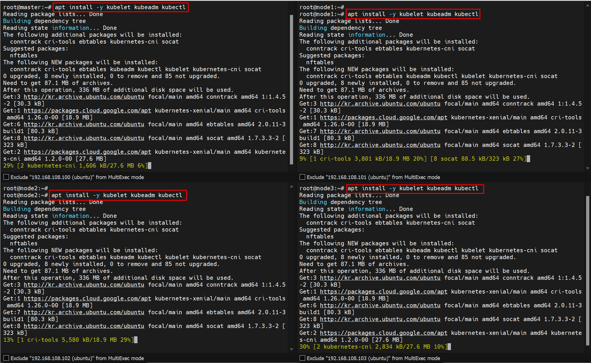 kubelet, kubeadm, kubectl 패키지 설치