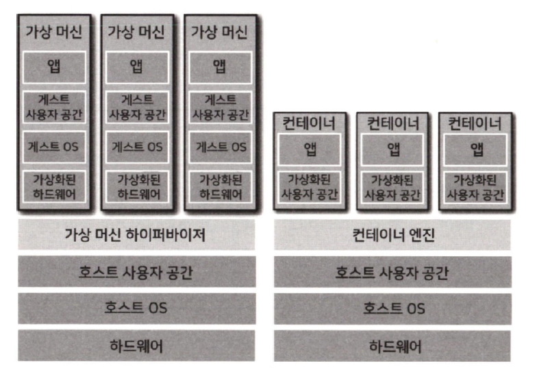 - 가상 머신 하이퍼바이저와 컨테이너 엔진 이미지 유형 비교