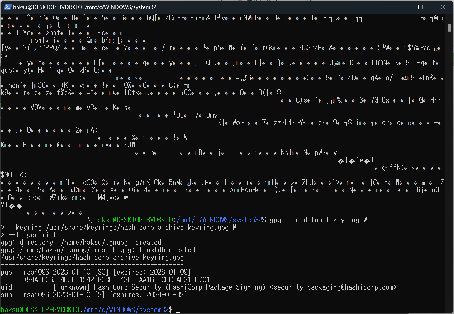 3) 변환된 키를 '/usr/share/keyrings/hashicorp-arvchive-keyring.gpg' 파일에 저장