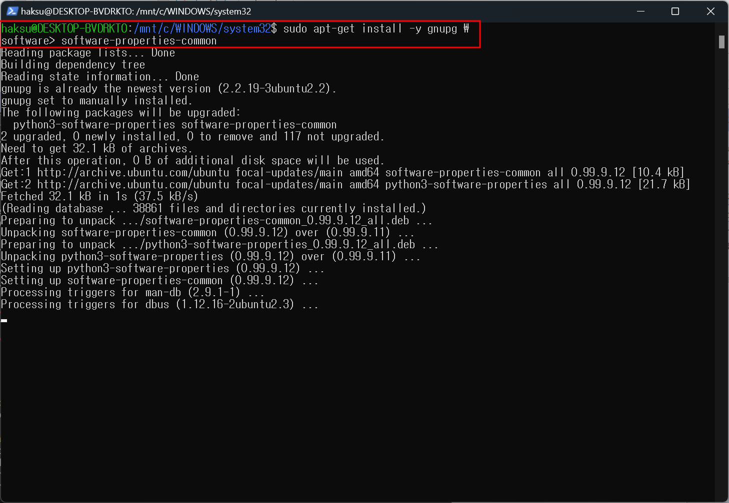 sudo apt-get install -y gnupg \