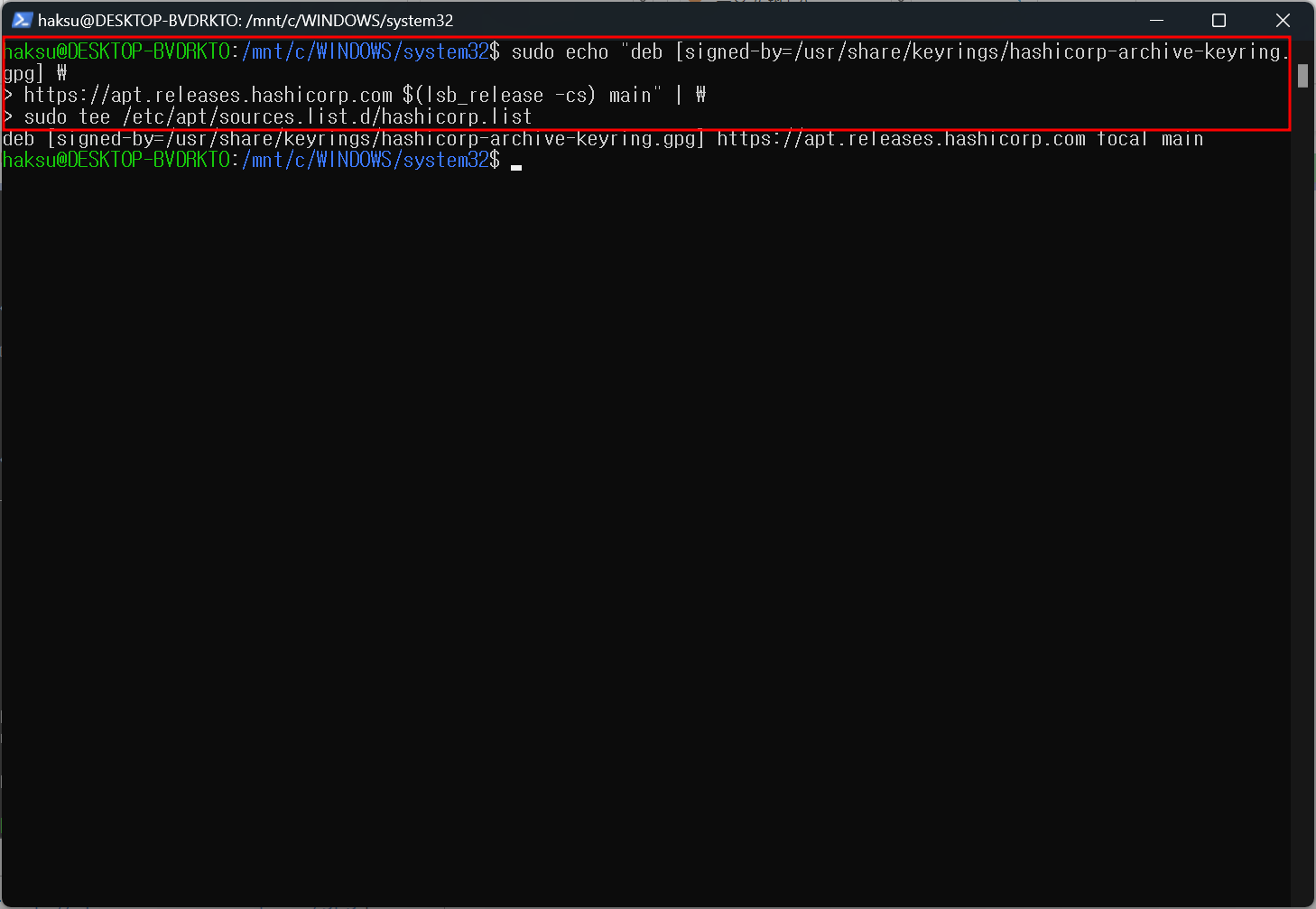 sudo tee /etc/apt/sources.list.d/hashicorp.list
