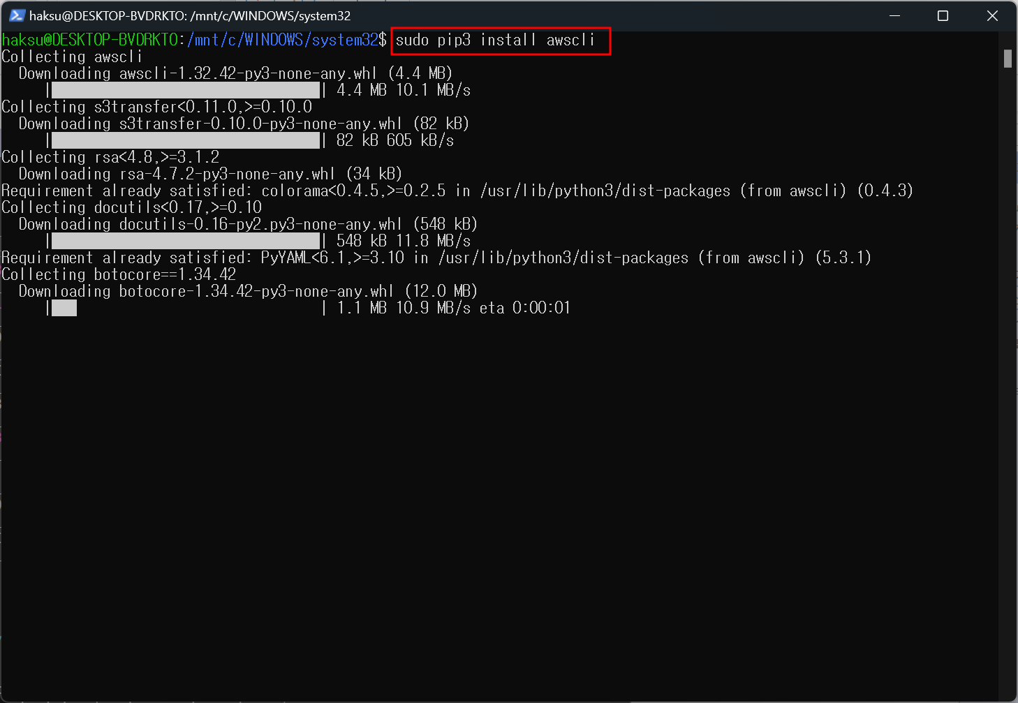 sudo pip3 install awscli