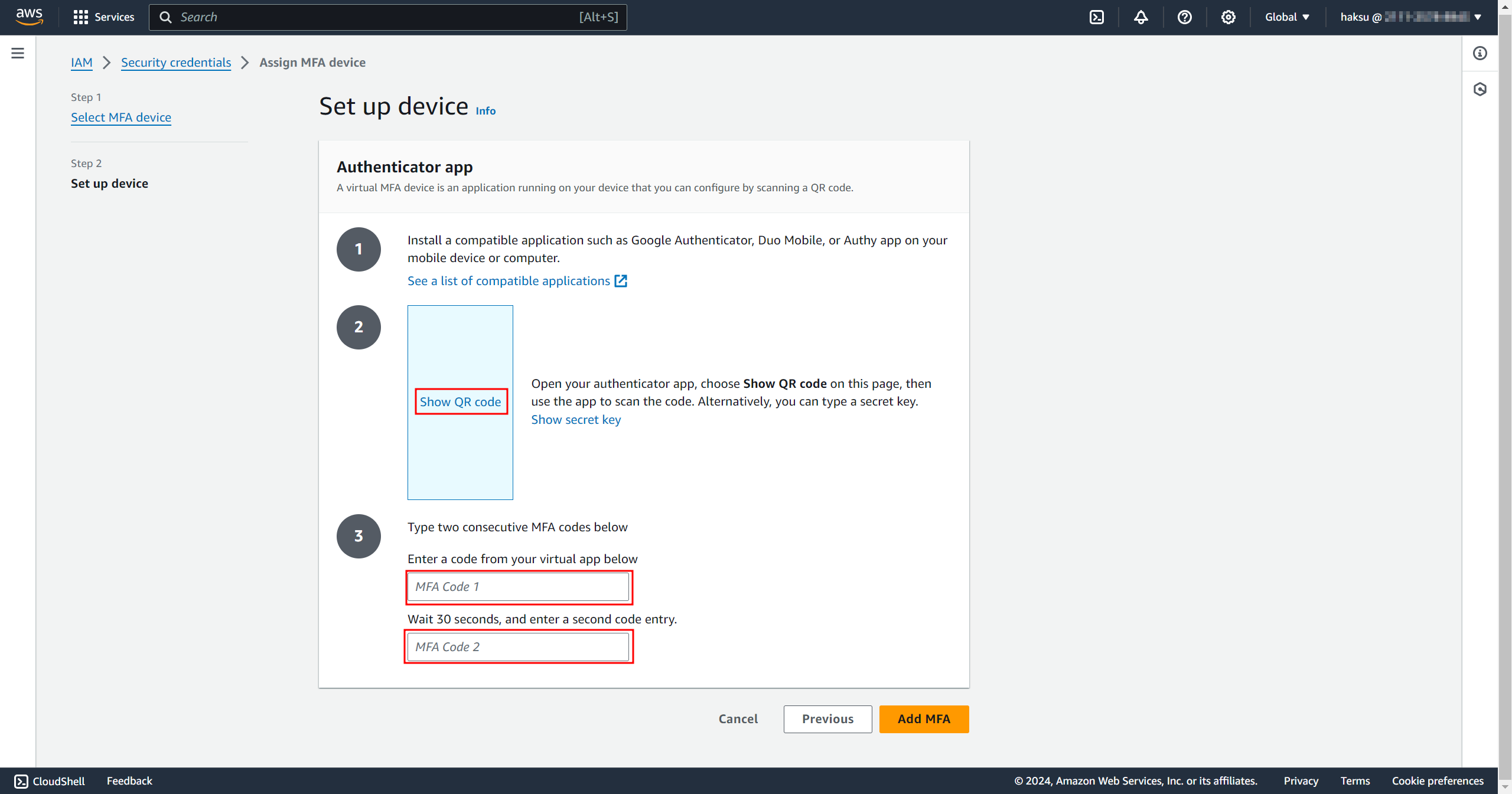 2. MFA 설정
