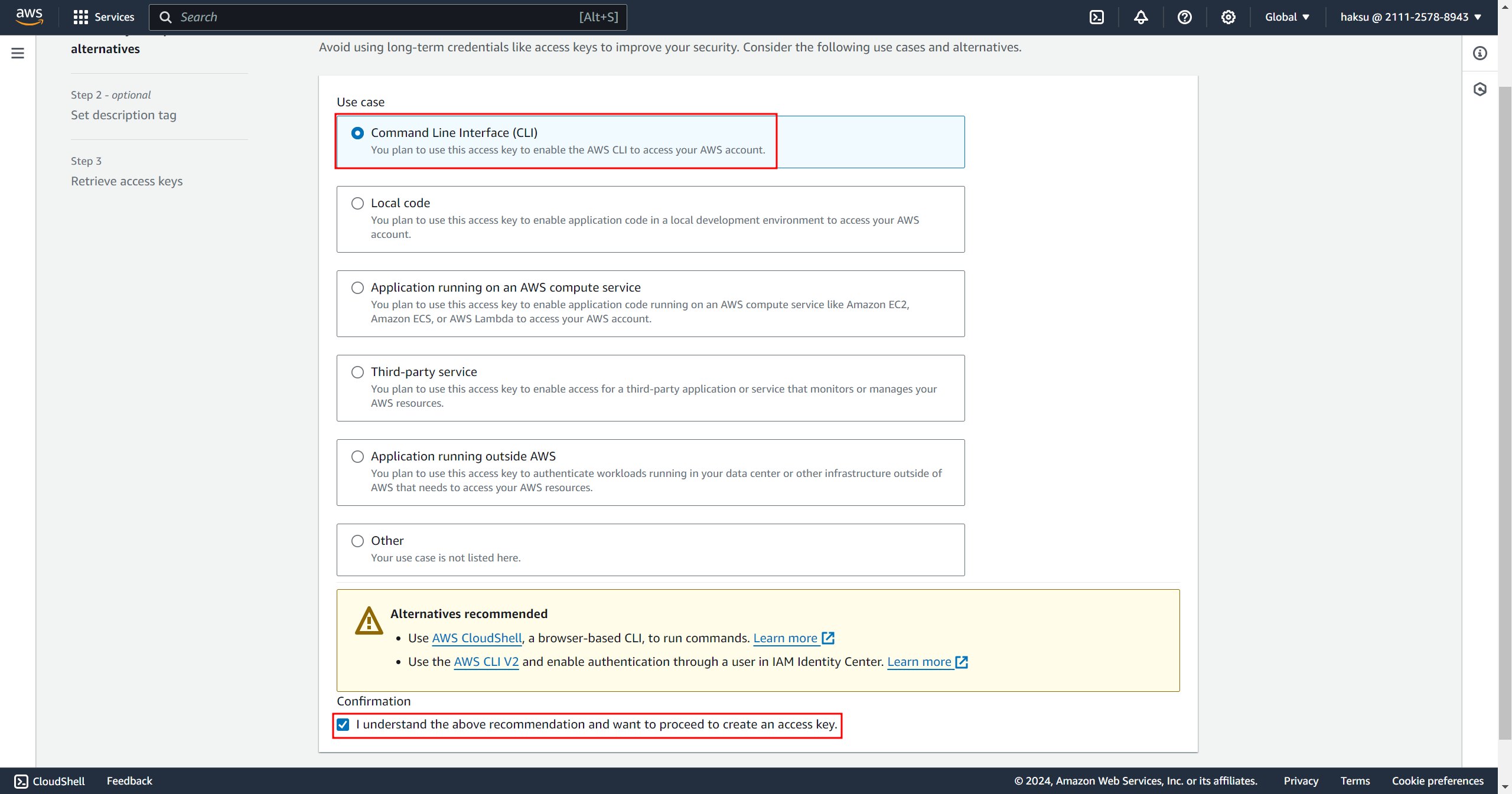 3. WSL CLI 환경에서 AWS Credentials 인증을 위한 Access Key 생성