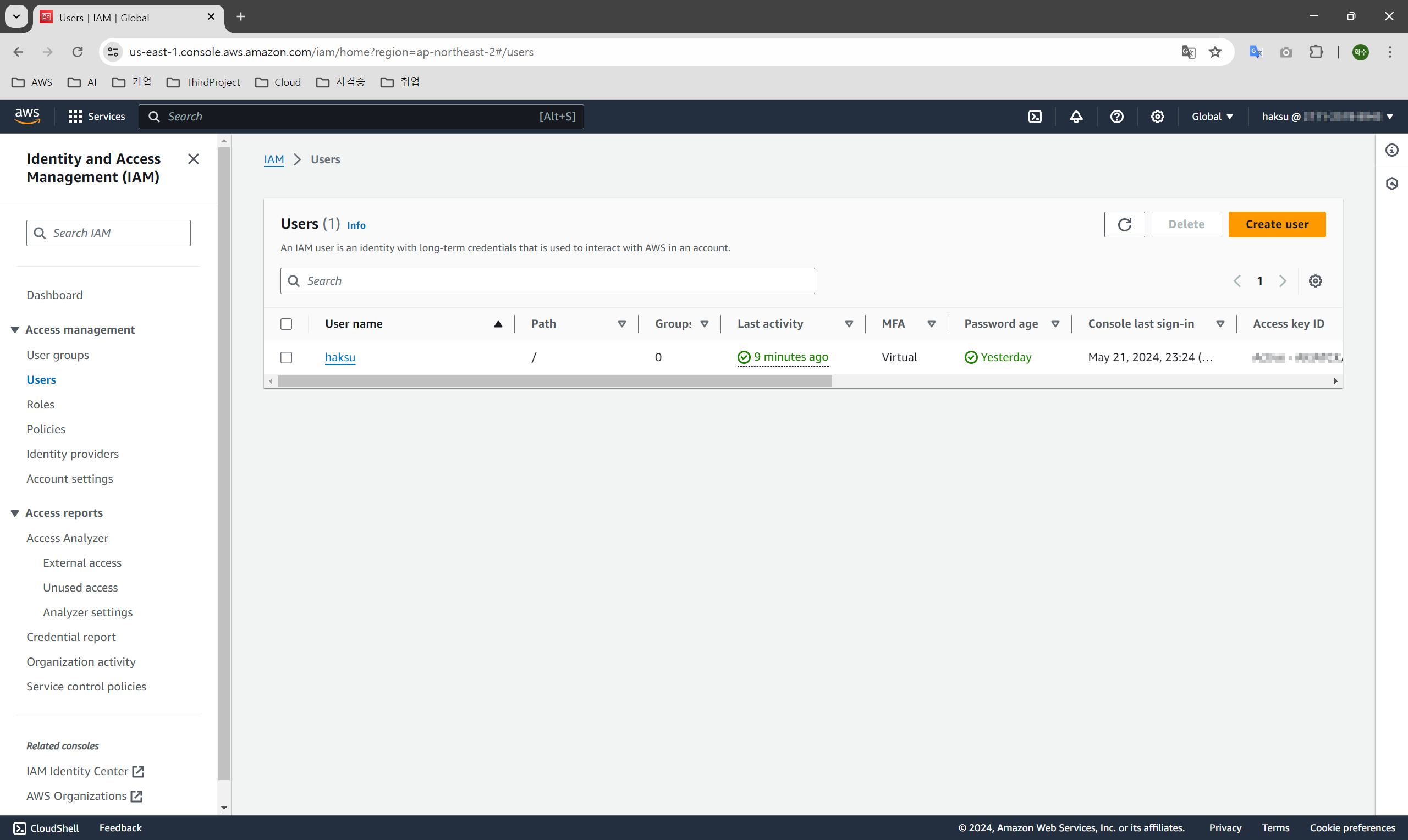 | [Terraform] IAM Group 생성 후 정책 적용 및 IAM User 추가 (1) | 2024.05.28 |