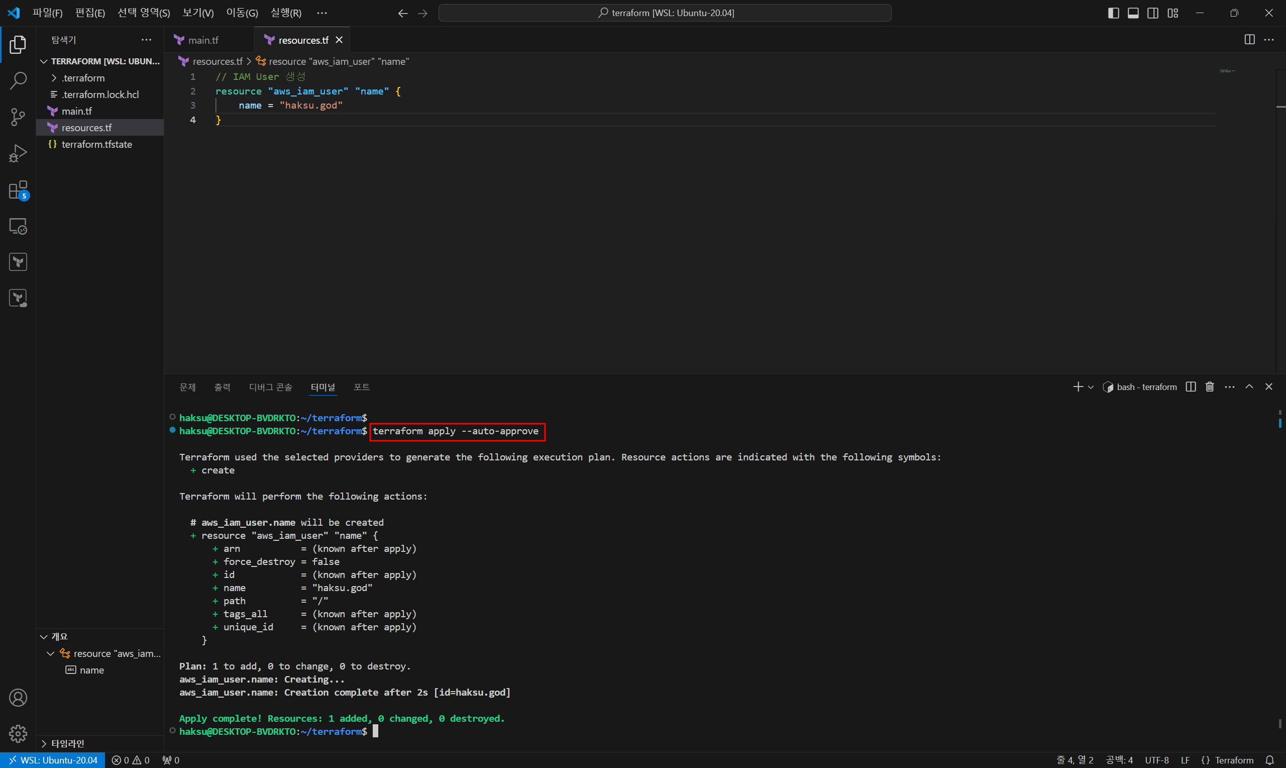 --auto-approve 명령을 빼고 진행하면 진행할건지 묻는 과정을 거쳐야 함