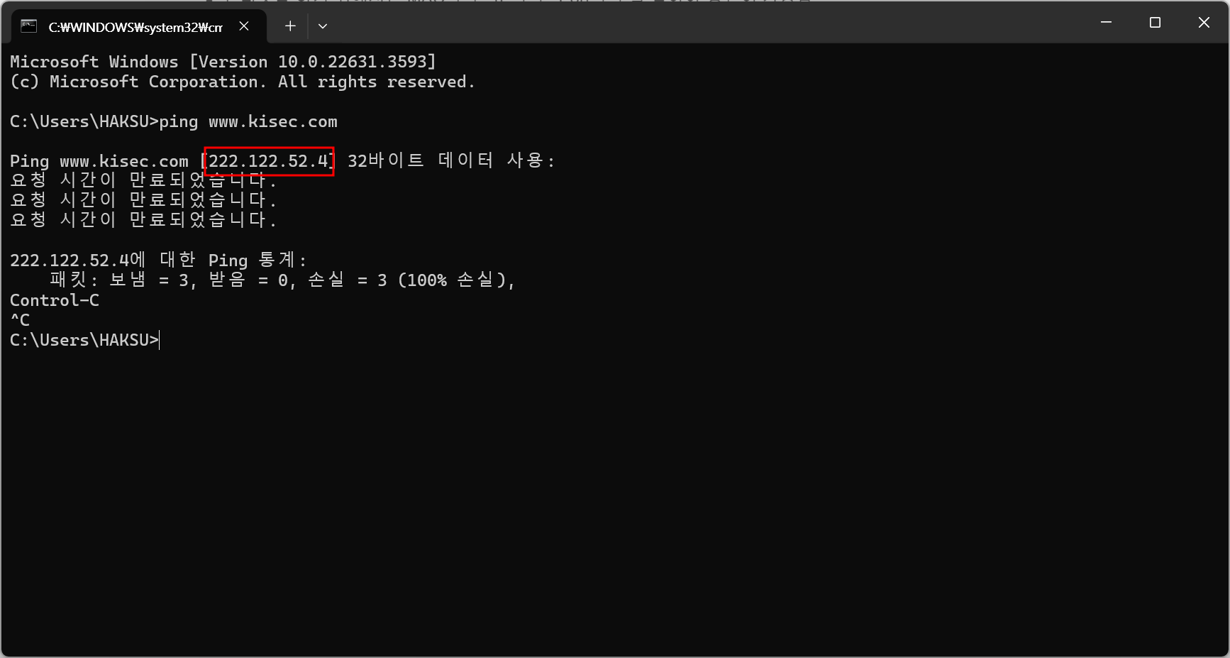 실제 핑이 나가지는 않지만 해당 웹 사이트에서 사용하는 주소 확인 가능