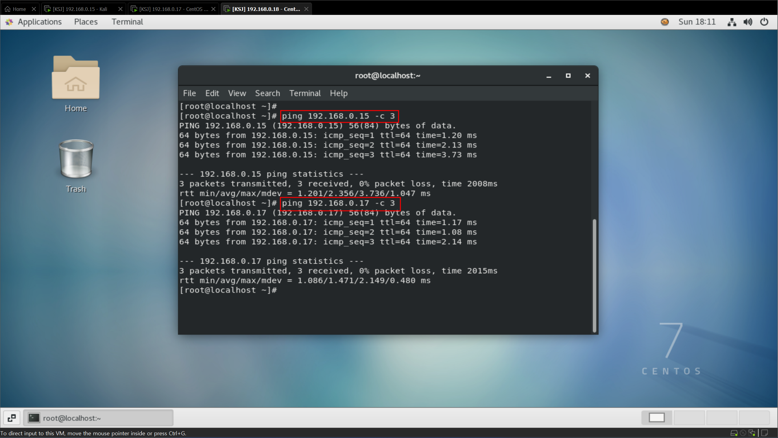 CentOS 7.6에서 Kail, CentOS 6.9로 핑을 보내 정상적인 ARP 테이블 구성