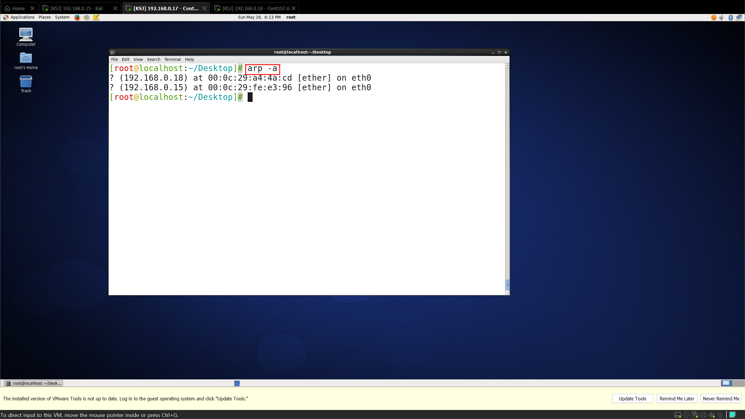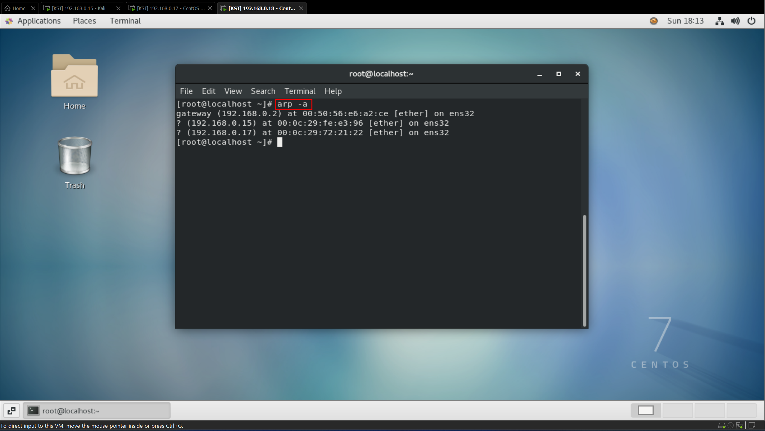 CentOS 6.9(192.168.0.17)과 CentOS 7.6(192.168.0.18)도 ARP 패킷을 보내 ARP를 발생시키고 최신화 시키기 때문에 지속적으로 ARP Spoofing을 수행해줘야 한다!