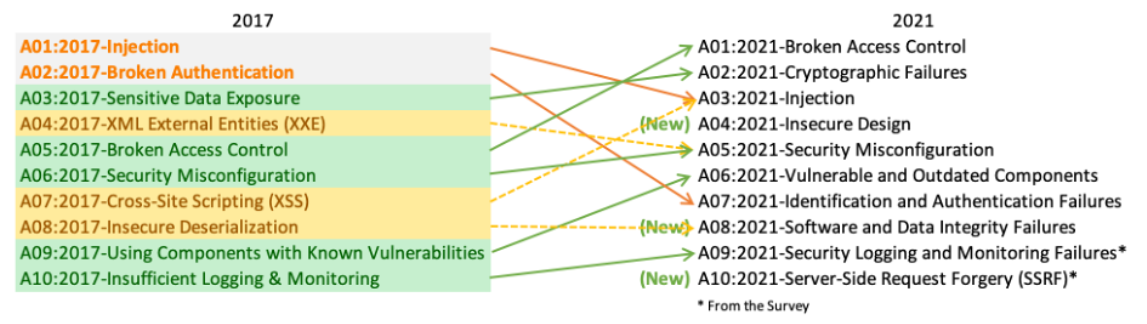 - Insecure Deserialization(안전하지 않은 역직렬화) -> Software and Data Integrity Failures(소프트웨어 및 데이터 무결성 오류)