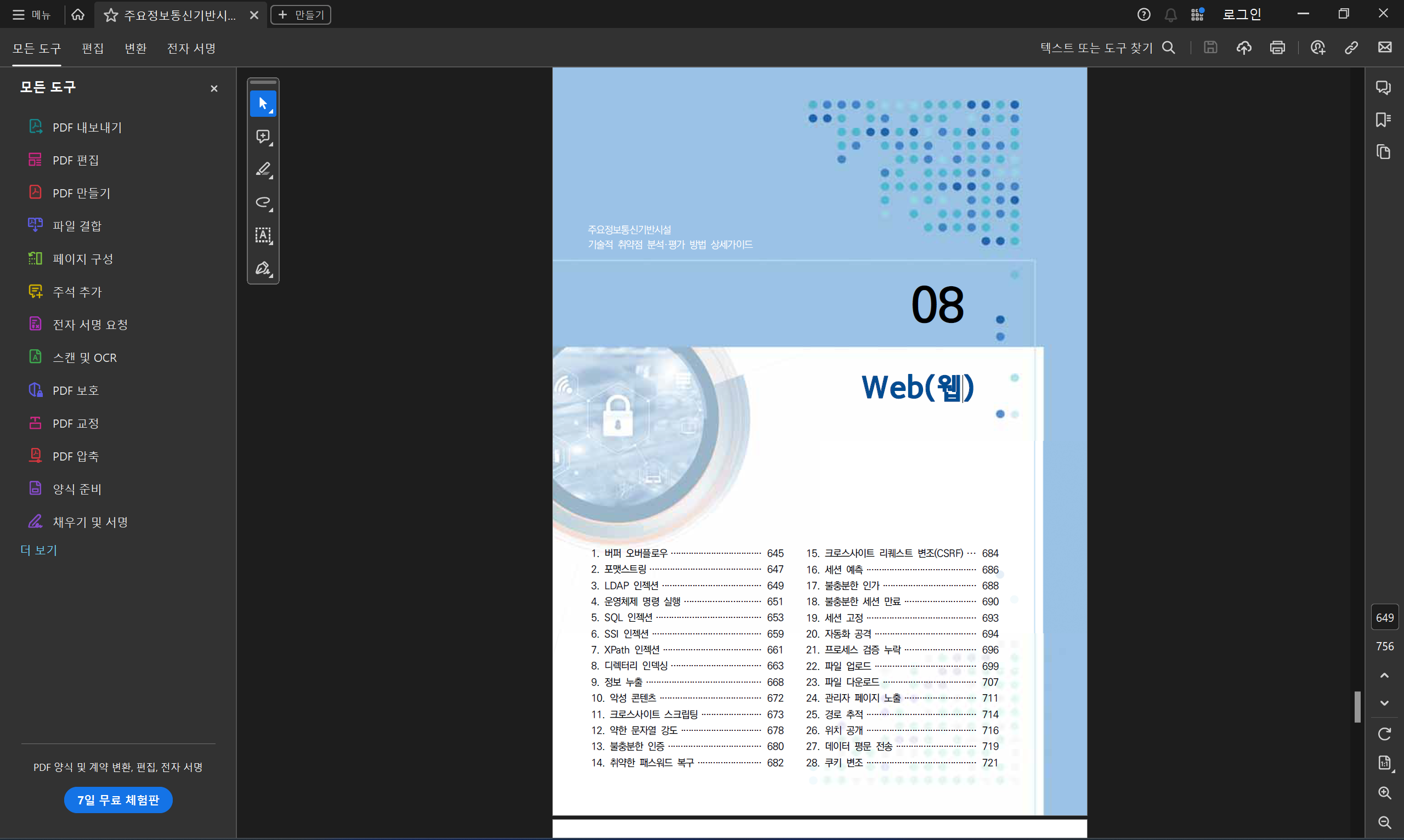- 주로 웹 애플리케이션을 이용한 해킹(SQL Injection, XSS, 파일 업로드/다운로드 취약점)