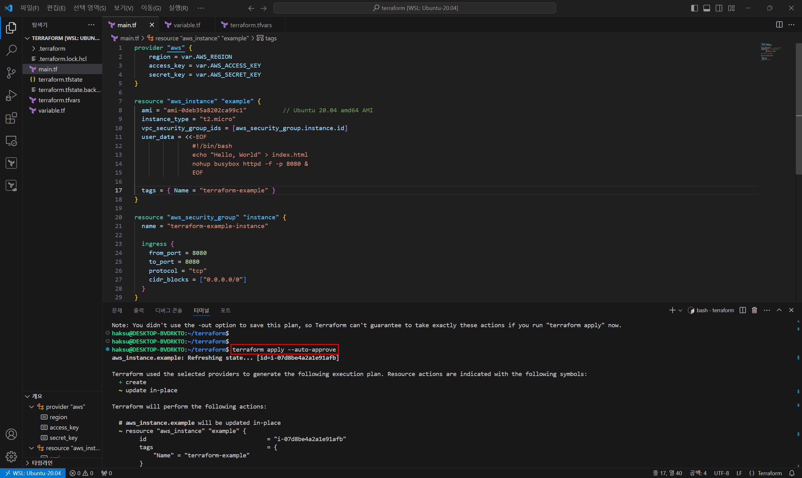 vpc_security_group_ids = [aws_security_group.instance.id] // 해당 코드 추가
