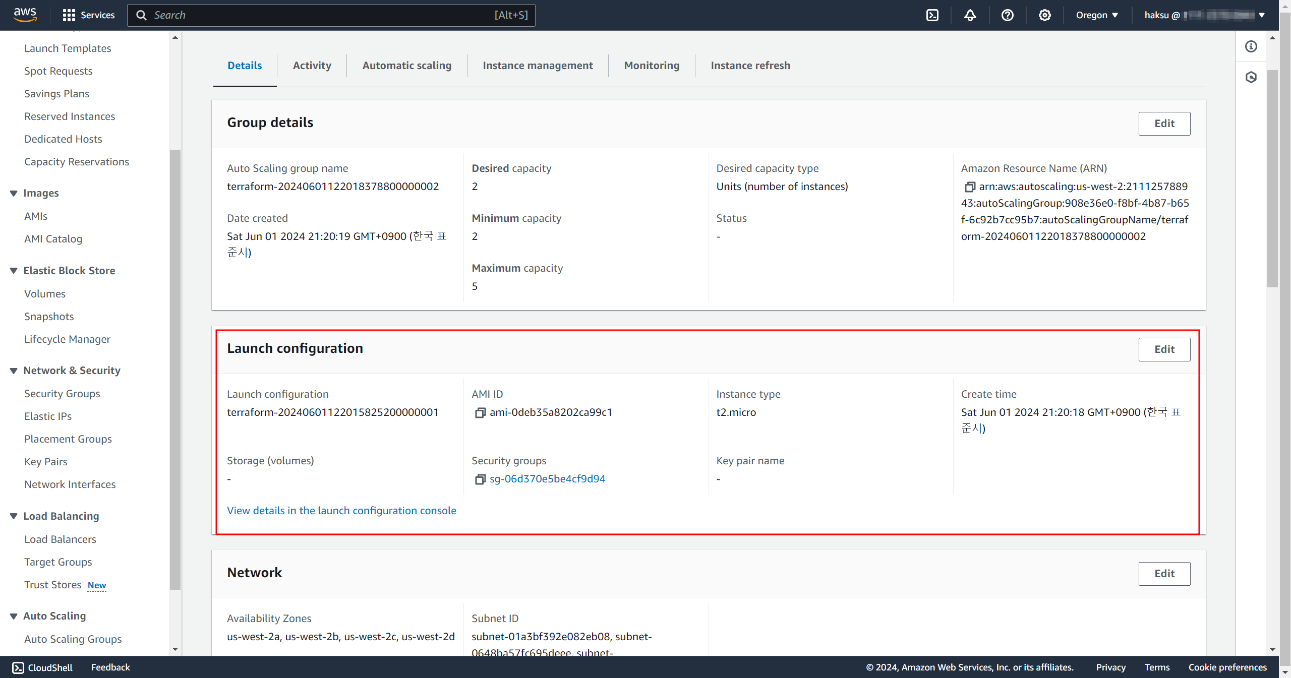 각 EC2 인스턴스를 어떻게 구성할 것인지 설정하는 것이다. aws_instance 리소스와 거의 동일하지만 ami는 image_id로, vpc_security_group_ids는 security_groups로 사용한다.