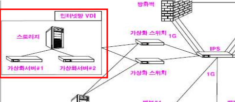 - IPS(+IDS)를 거쳐 인터넷망 VDI에서 스토리지에 데이터 저장(데이터센터 개념)