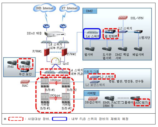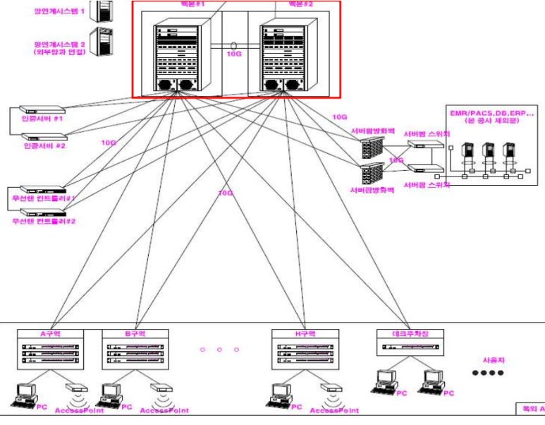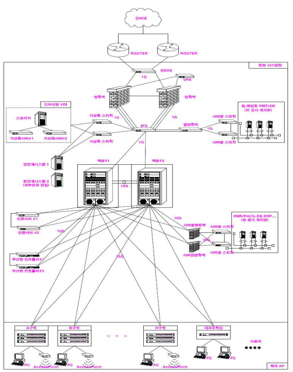 - 2개의 인터넷망을 두어 장비처럼 인터넷도 이중화 시킴(비용 부담이 큼, 국립의료원 세금운영이라 아몰랑 한건가)
