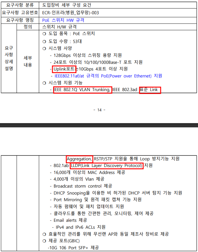 ==>> 네트워크 디자인하고 요청서 제출할 때, 내가 필요한 기능이 있는 장비를 확인하고 선정, 구매해야 함