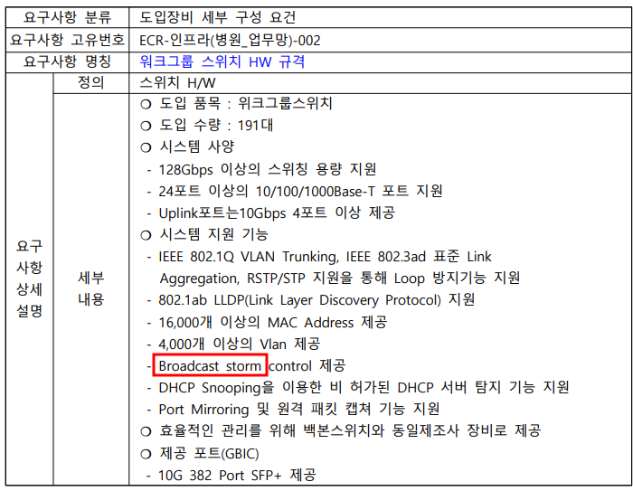 - (위 네트워크 구성도에서는 백본 스위치를 해당 기능이 있는 장비 선정)