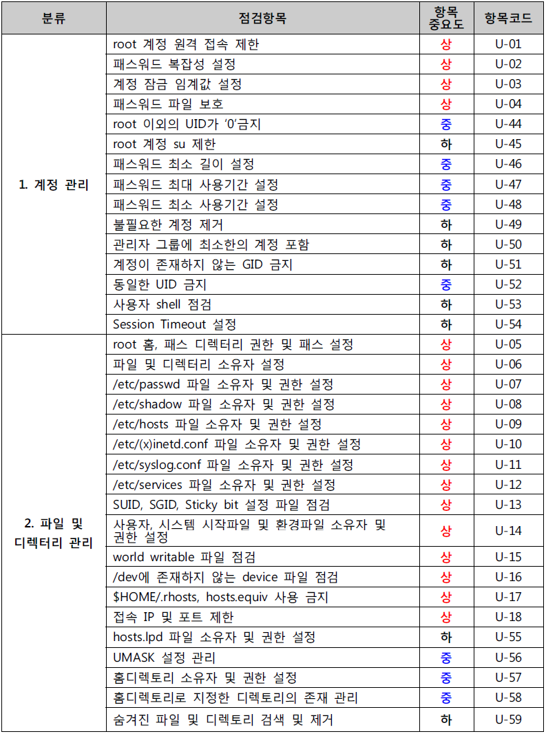 Unix 서버 취약 분석·평가 항목