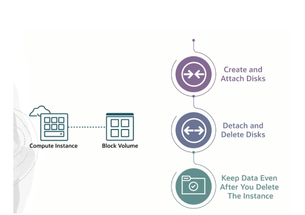 예를 들어 데이터와 애플리케이션을 저장하기 위해 컴퓨터의 물리적 하드 드라이브와 마찬가지로 블록 볼륨을 사용한다. 데이터 손실 없이 한 인스턴스에서 볼륨을 분리하고 다른 인스턴스에 연결할 수 있다.