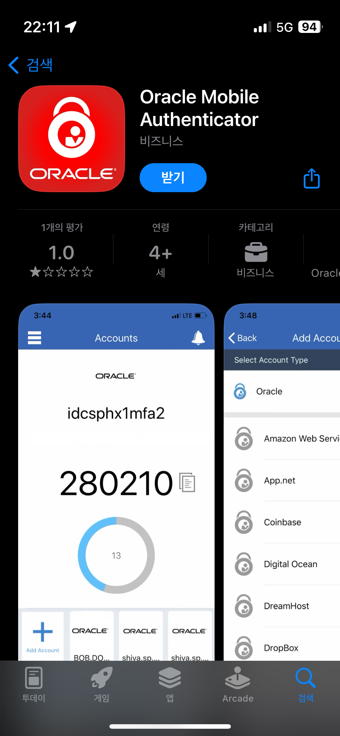 Oracle Mobile Authenticator 어플을 이용해 2단계 인증 받기