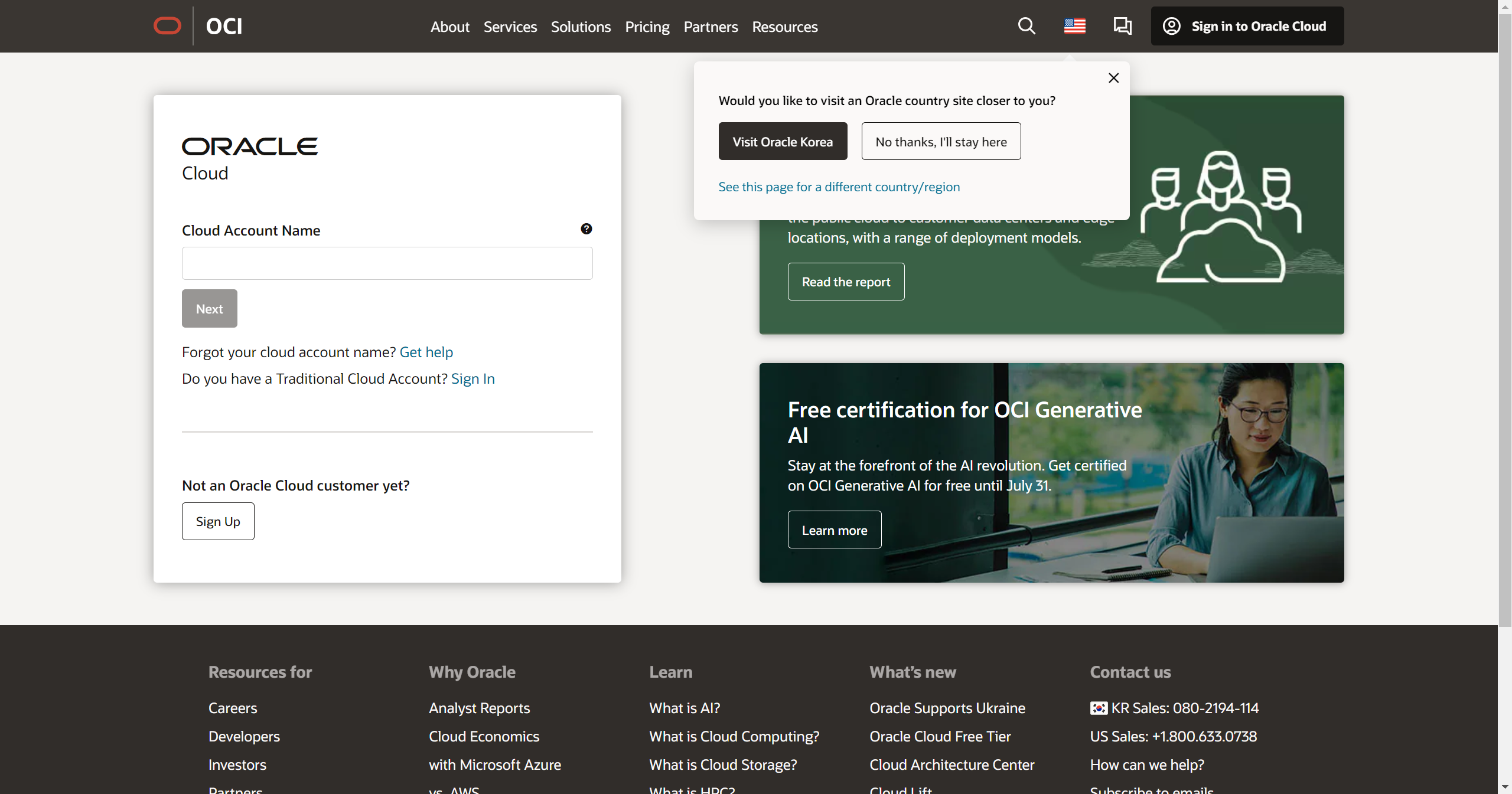 오라클 클라우드 로그인 화면이 뜨면 완료된 것이다.