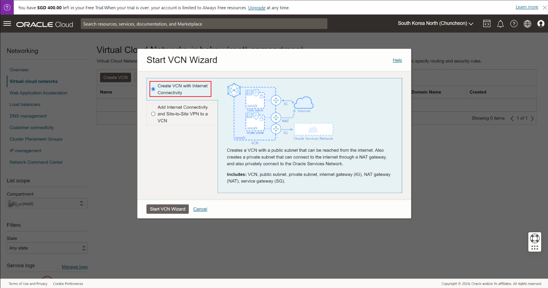 Start VCN Wizard 선택