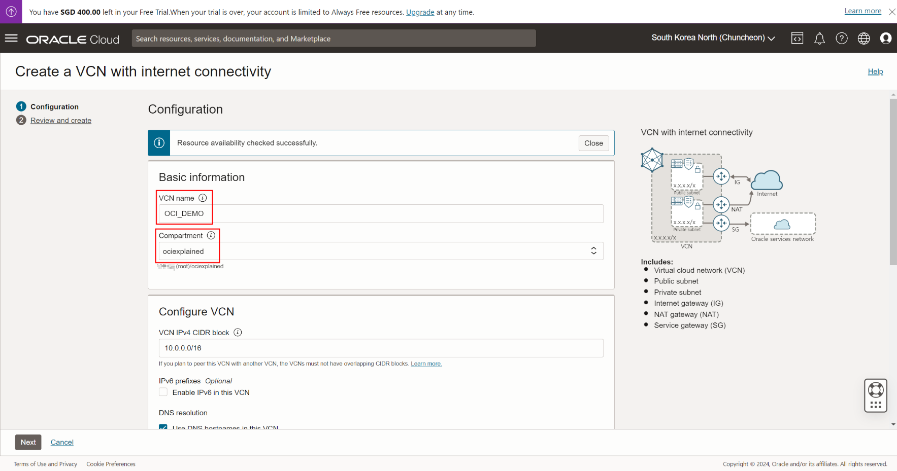 Compartment : ociexplained(해당 리소스를 배포하려는 컴파트먼트 선택)