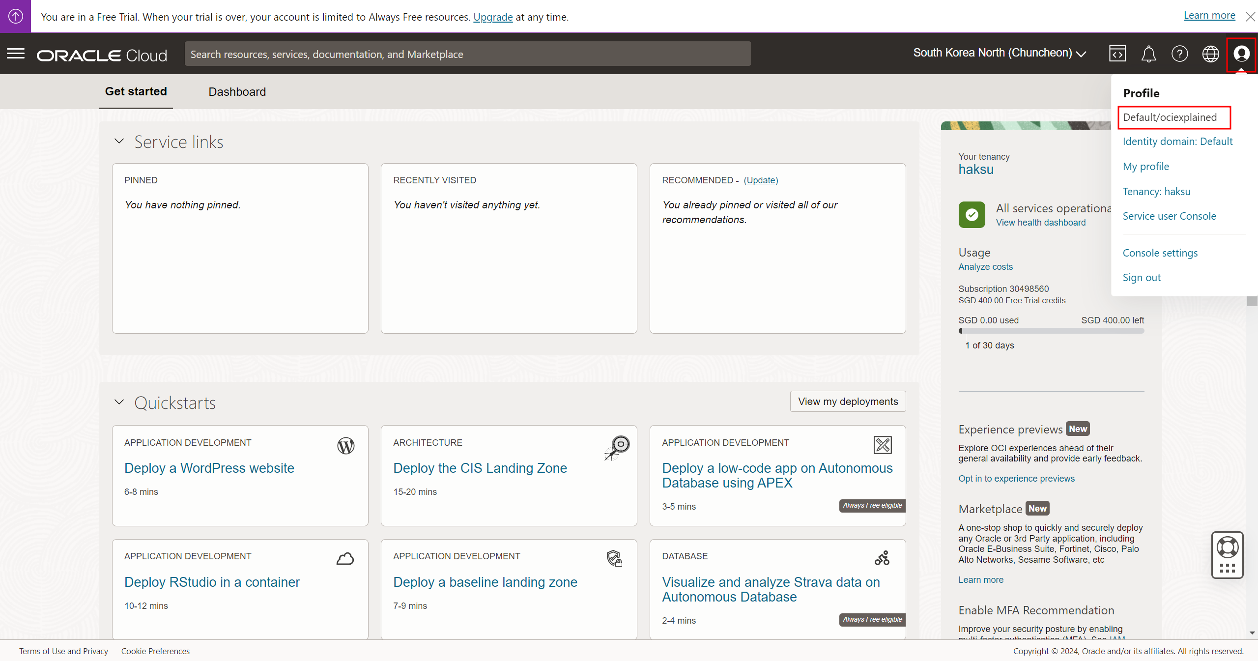 최종적으로 ociexplained 유저로 로그인 성공