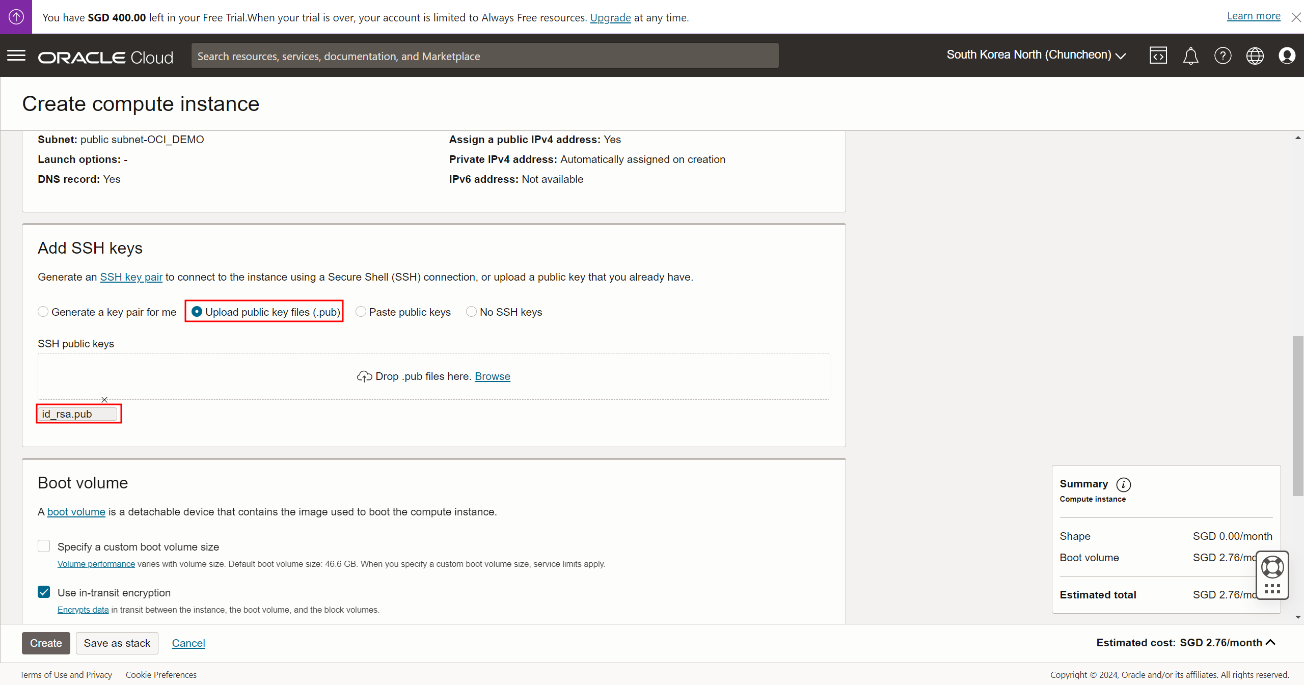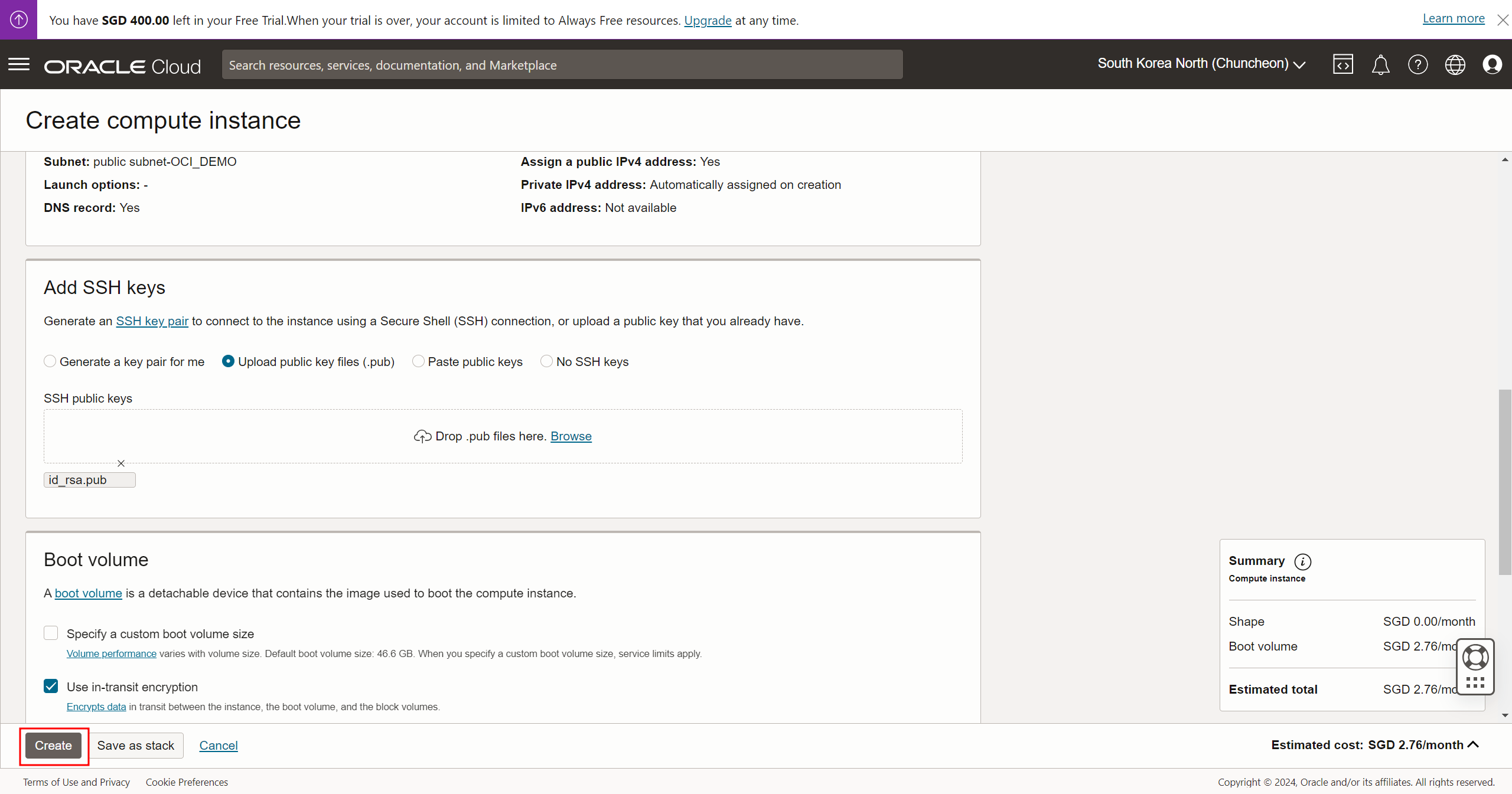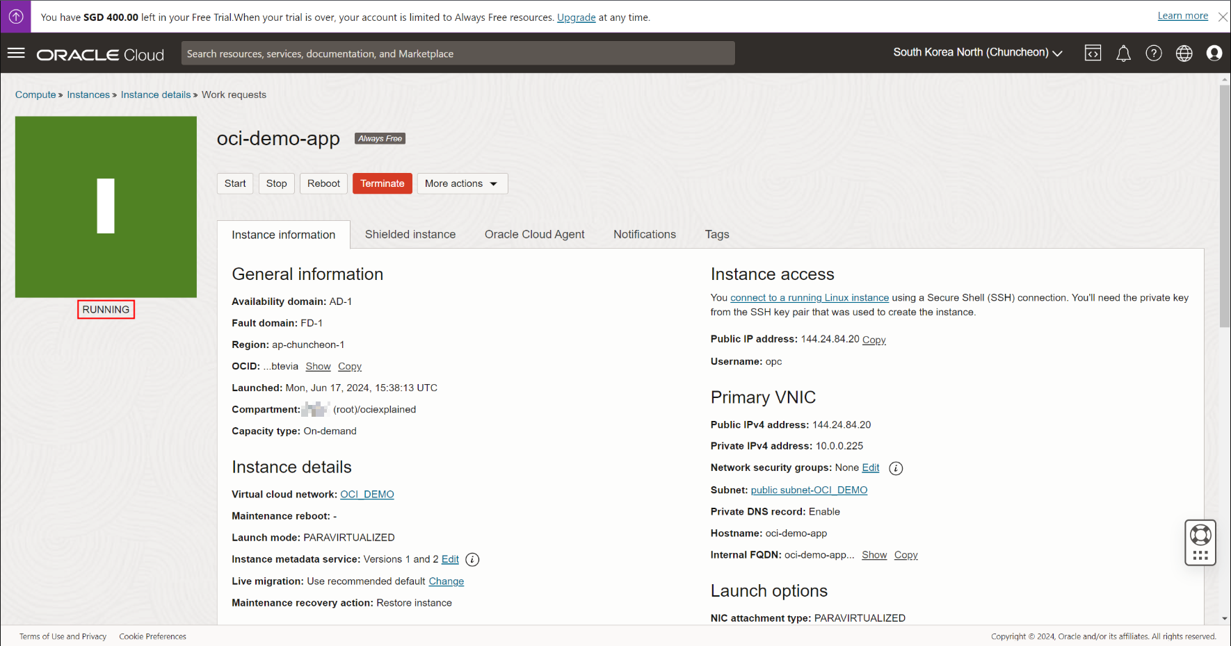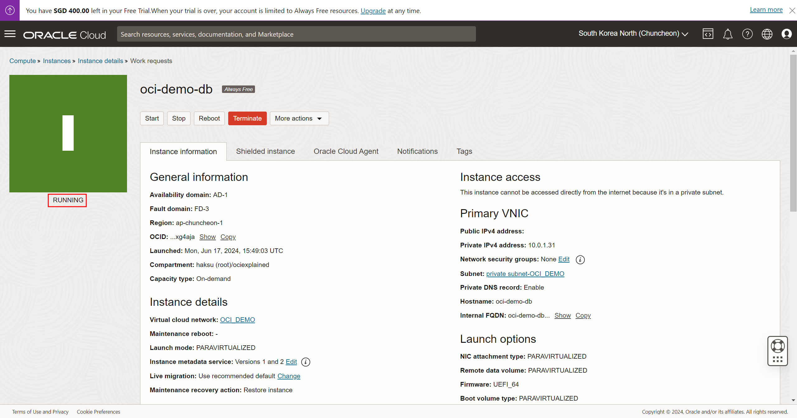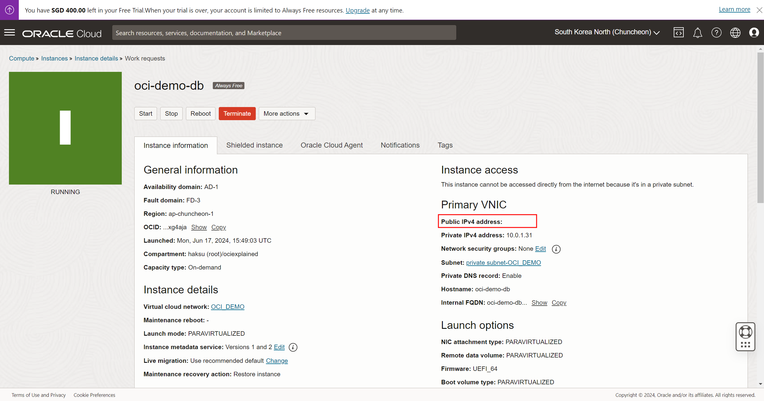 Subnet : public subnet-OCI_DEMO (자동 생성된 서브넷)