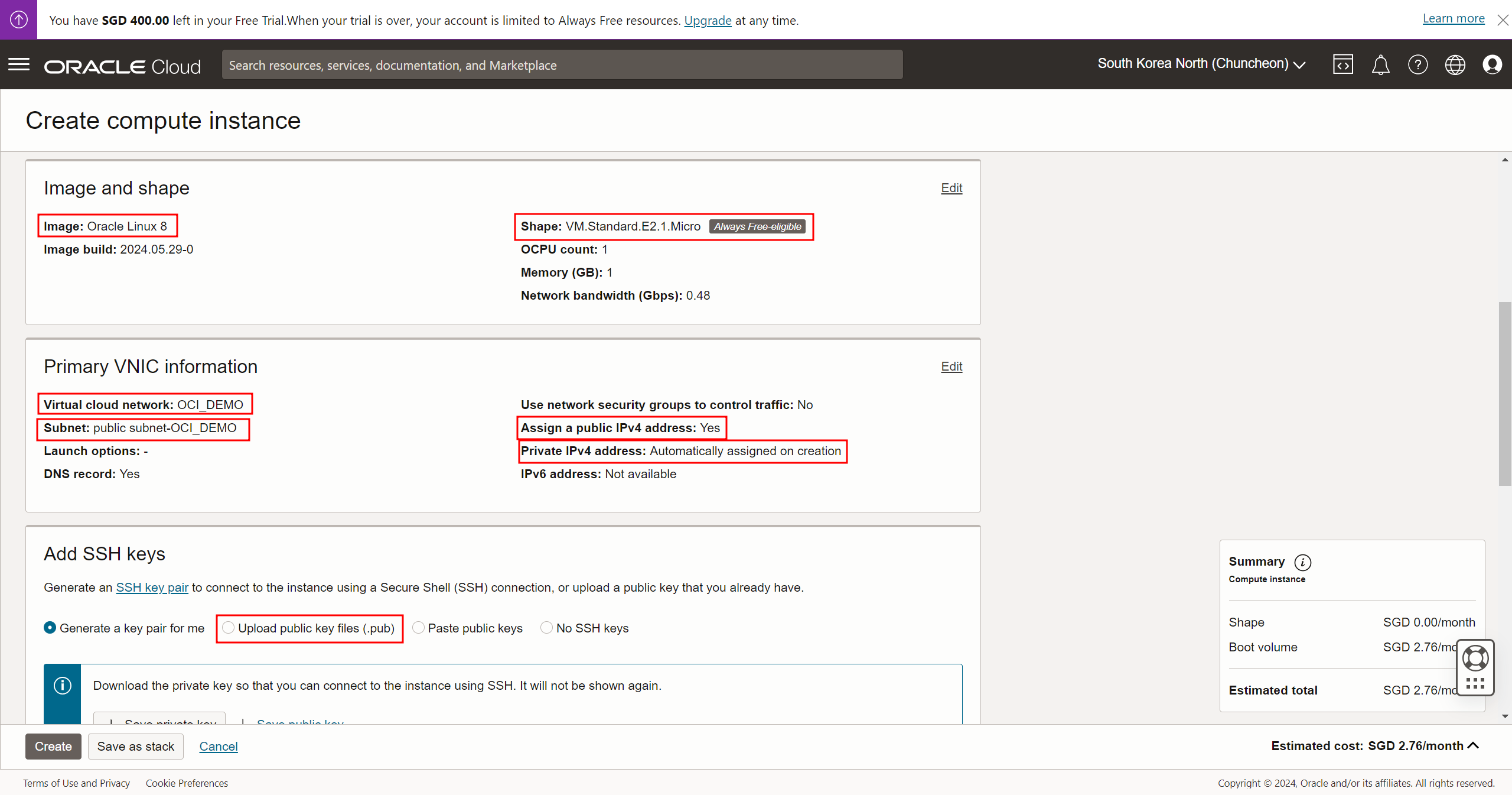 Shape : VM.Standard.E2.1.Micro (Free Tier 선택)