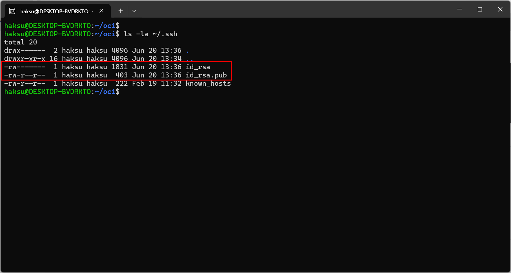 SSH 키 페어를 생성할 때는 가상 머신 생성 화면에서 "Generate a key pair for me" 옵션을 선택해서 오라클 클라우드에서 생성한 프라이빗 키와 퍼블릭 키를 이용할 수도 있다. 하지만 이 경우 생성된 프라이빗 키를 다른 사용자가 읽지 못하도록 읽기 권한을 변경해야 하며, 키 이름에 날짜가 포함되는 점도 고려해야 한다.
