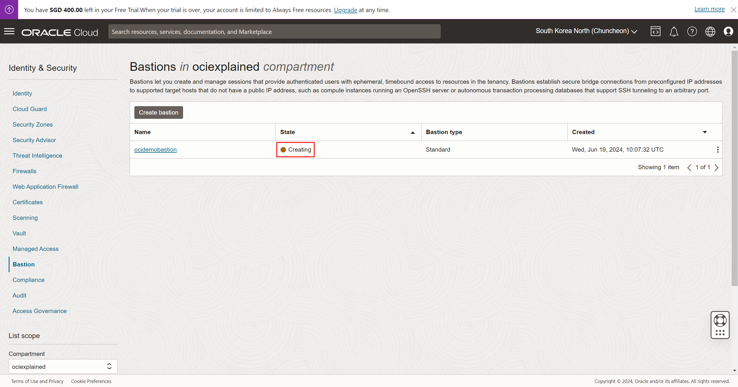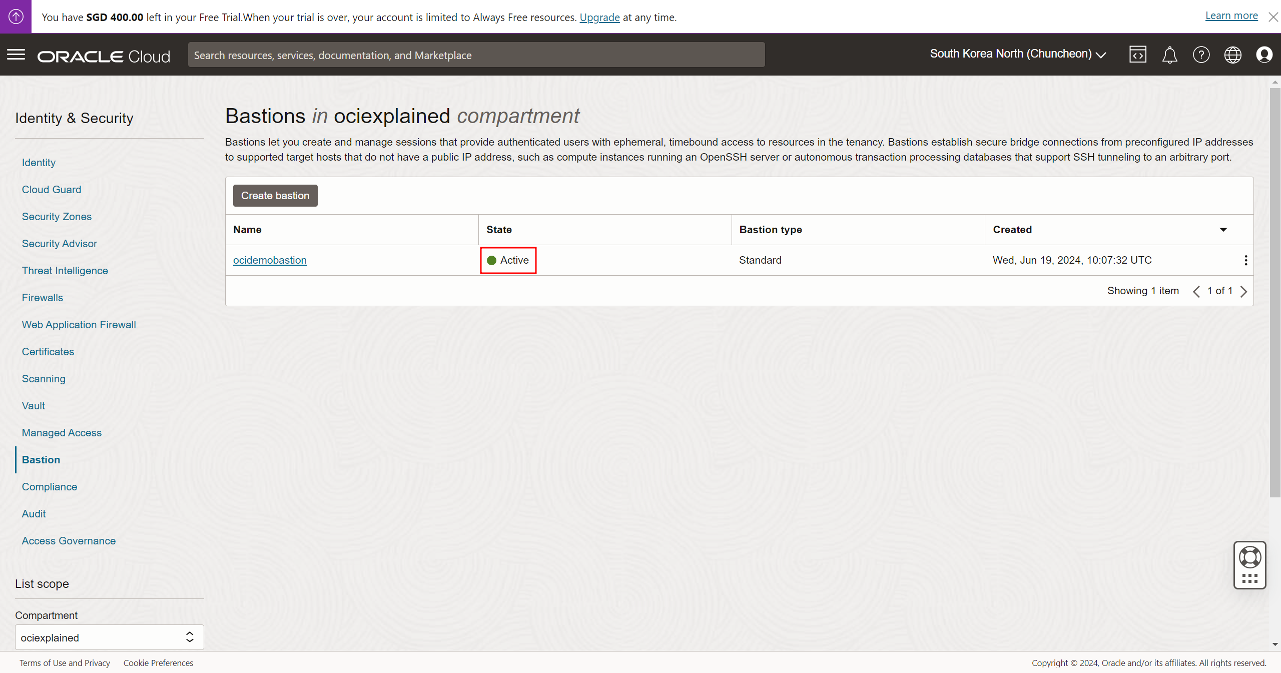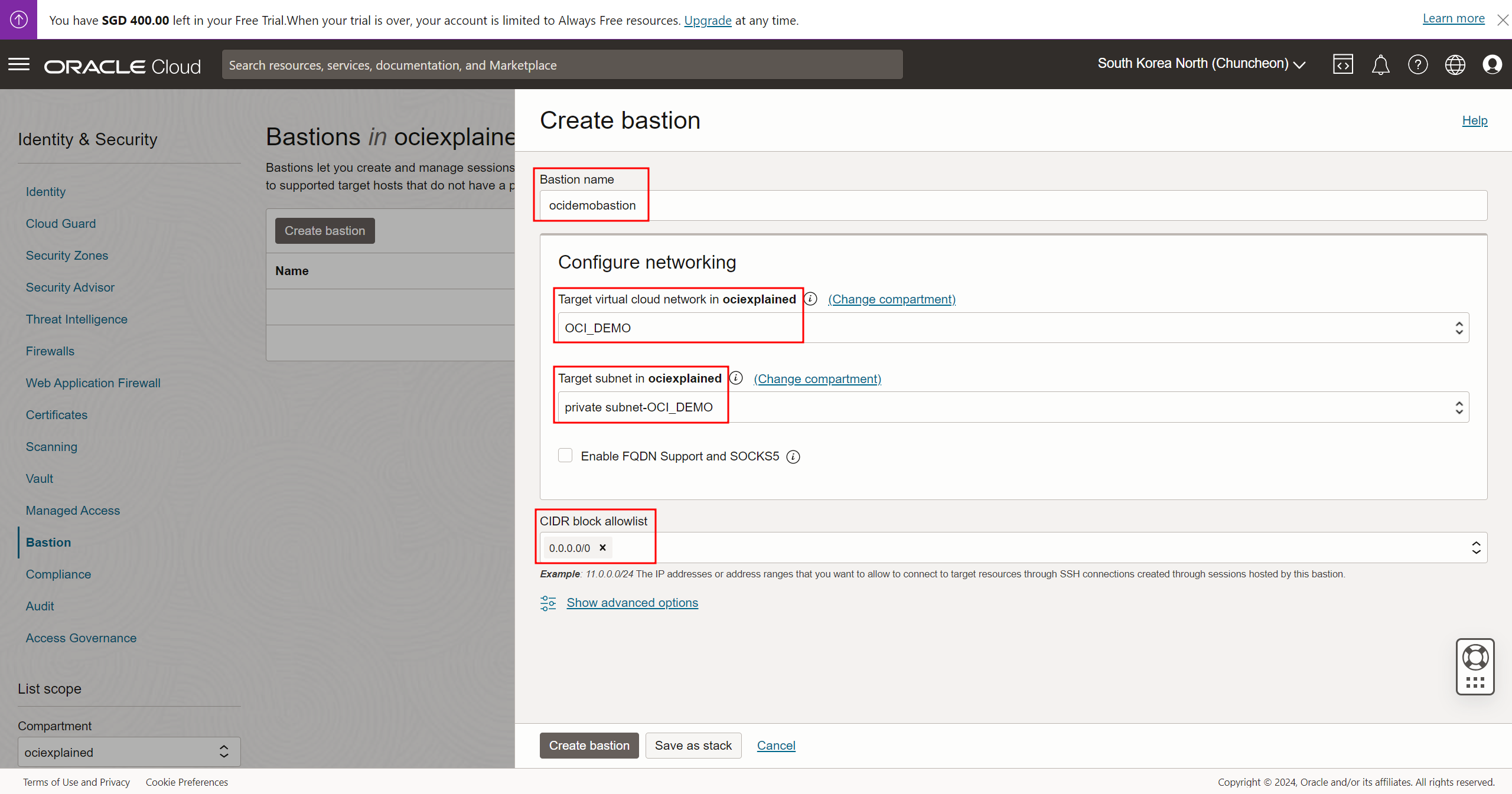 Bastion name : ocidemobastion