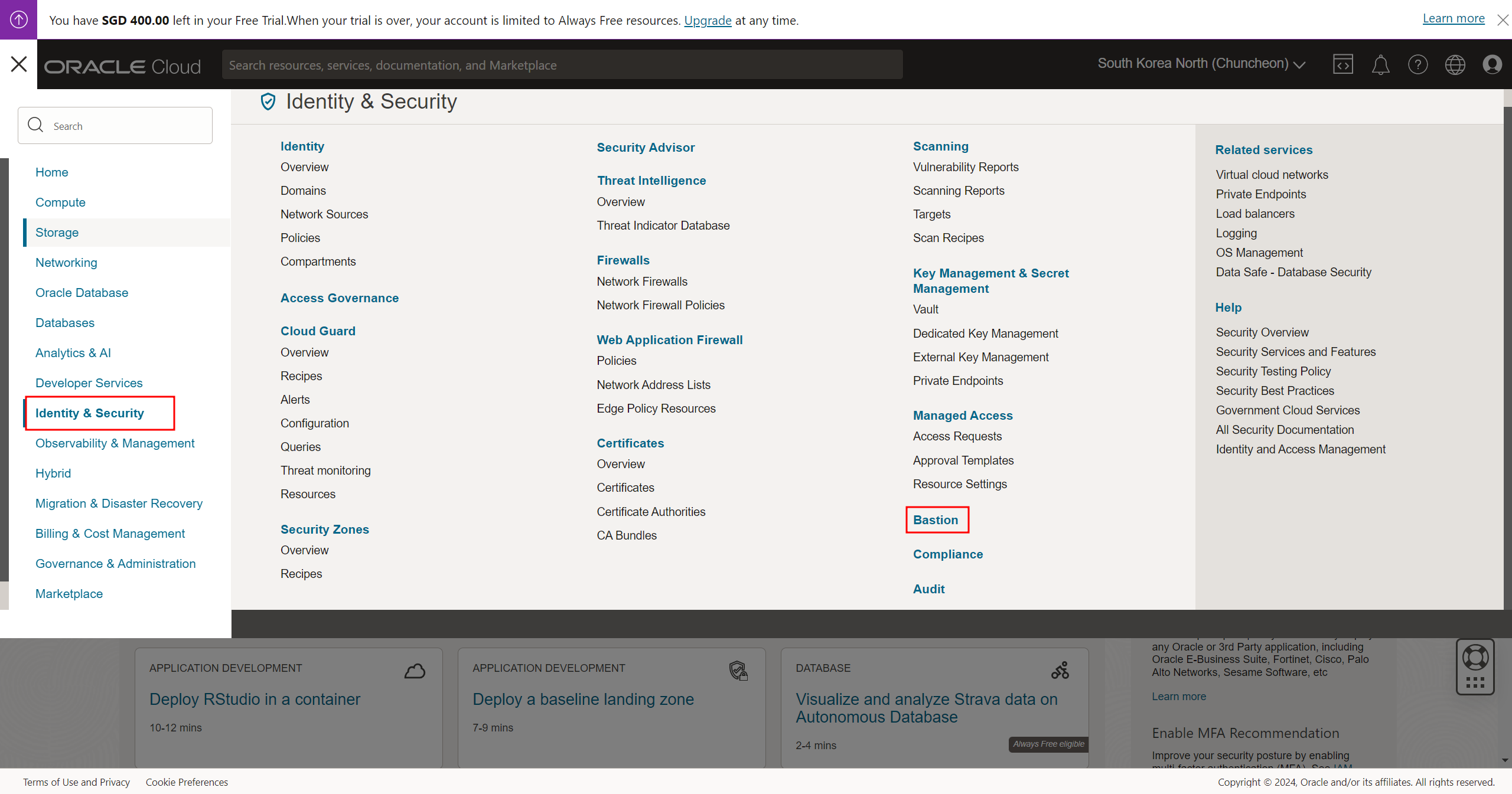 [Identity & Security → Bastion] 선택