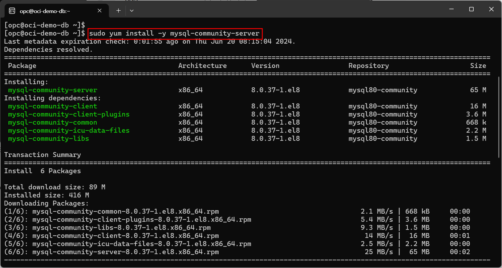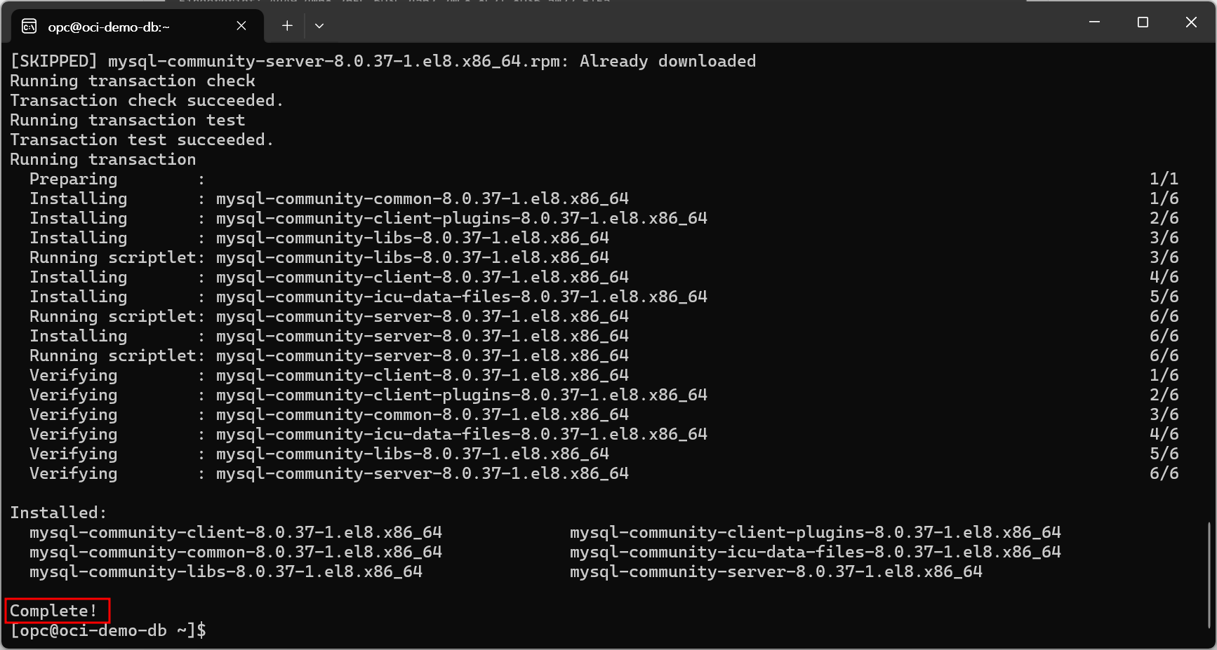 | sudo rpm -ivh https://dev.mysql.com/get/mysql80-community-release-el8-3.noarch.rpm |